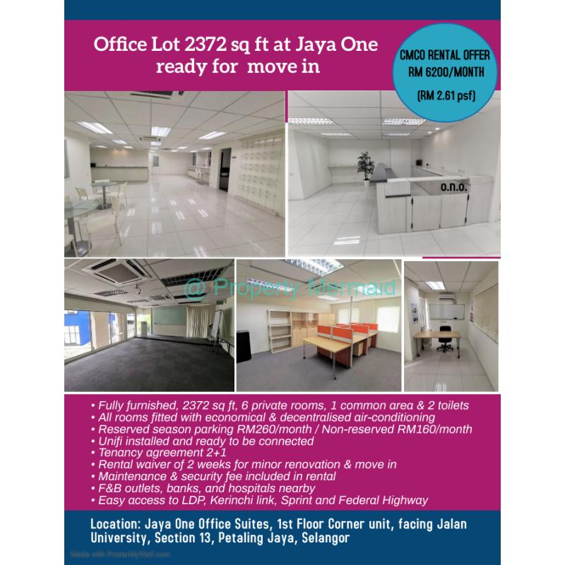 CMCO offer price: RM6200/month (RM 2.61 psf). Previously going at RM7200/month.